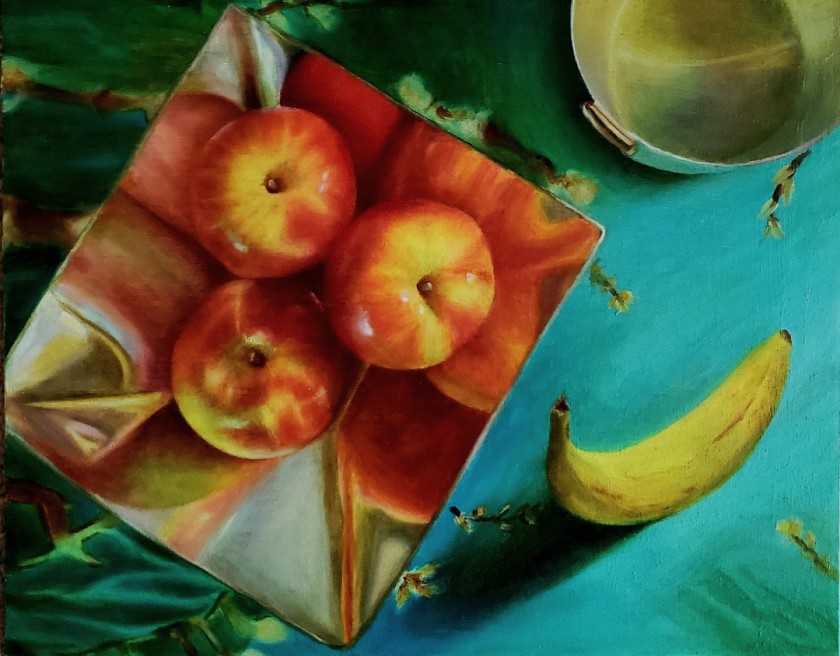 Still life on panel, available, 16"x 20", unframed $600. Contact the artist if you want it framed or unframed. Shipping cost extra within continental USA. This painting won the Best in Show award in the Genesis Juried show by RFAA, GA.